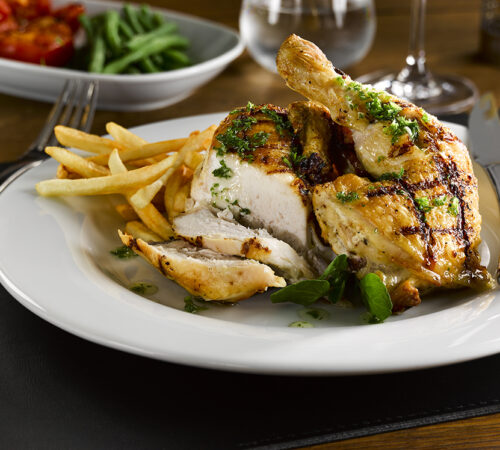 All served with a choice of french fries, chunky chips, mashed potatoes or grilled vegetables.